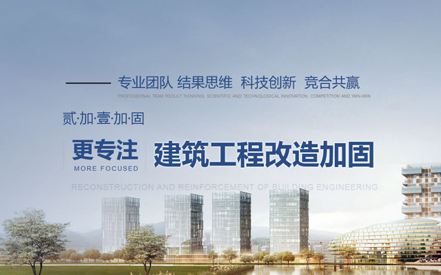 貳加壹 解決方案專業從事建筑工程改造加固技術研究及相關產品開發的 產業的公司 提供專業的加固咨詢、加固方案設計、工程施工服務 。